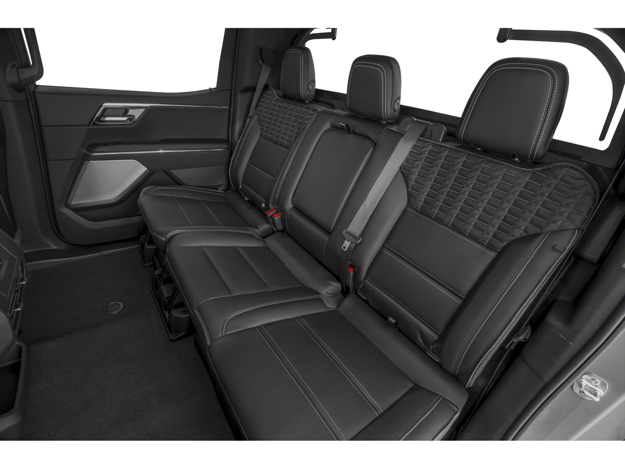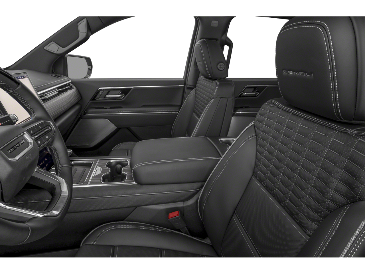 Navigation, Panoramic Roof, 4x4, Rear Air, Heated Driver Seat, Heated Rear Seat, Cooled Driver Seat, Back-Up Camera, Running Boards, Premium Sound System MP3 Player, Keyless Entry, Privacy Glass, Child Safety Locks. GMC Extended Range Denali with Summit White exterior and After Dark (Black) interior features a Electric Motor.