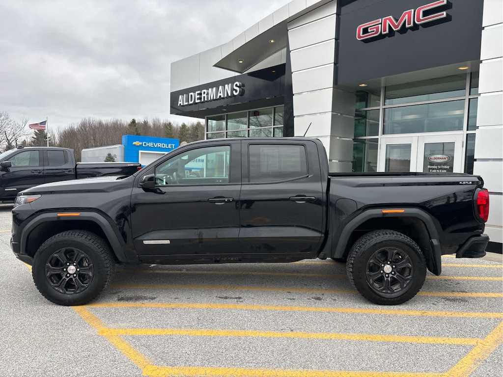 ELEVATION PREMIUM PACKAGE includes (HXR) Jet Black CoreTec interior, (DA5) Rear Seat Center Arm Rest, (E90) Driver seat back pocket and (Y5W) Canyon Safety Plus Package, CONVENIENCE PACKAGE includes (DEG) Driver and front passenger sliding visor with illuminated vanity mirrors, (C49) rear window electric defogger, (T40) LED front fog lamps, (CJ2) dual zone automatic climate control, (KI6) 120-volt power outlet rear of console, (KC9) 120-volt bed-mounted power outlet, (BTV) Remote Start, (DD8) inside rear view auto-dimming mirror, (A28) rear sliding manual window, (N37) manual tilt/telescoping steering column, (UBI) 2-USB Charge Only, rear of console, (BDR) Tailgate keyed cylinder lock, (BPC) MultiStow Tailgate, (C75) Front interior courtesy light with dual reading light, (DLF) outside heated power mirrors and (PPA) EZ-Lift and Lower tailgate, PREFERRED PACKAGE includes (A2X) 8-way power driver seat, (AL9) Power lumbar Driver seat and (KA1) heated driver and passenger seats, TRAILERING PACKAGE includes trailer hitch and 7-pin connector (Includes (JL1) Trailer brake controller. CANYON SAFETY PLUS PACKAGE includes (UD7) Rear Park Assist, (UFB) Rear Cross Traffic Braking and (UKI) Blind Zone Steering Assist With (ZL6) ProGrade Trailering System, includes (UKW) Blind Zone Steering Assist with Trailering, DIFFERENTIAL, AUTOMATIC LOCKING REAR, TRANSMISSION, 8-SPEED AUTOMATIC, 8L80 (STD). GMC 4WD Elevation with Onyx Black exterior and Jet Black interior features a 4 Cylinder Engine with 310 HP at 5600 RPM*.